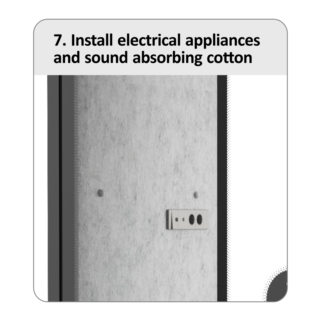 Our Maxi Phone pod can be installed in eight separate steps. The panels arrive flat packed and can be installed in under 45 mins with 2 people. We advise the use of trained installers who understand the ins and outs of office pods.